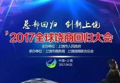 2017年4月1日,以“總部回歸,創新上饒”為主題的2017全球饒商回歸大會在江西省上饒市萬達嘉華酒店隆重召開,大會由江西省上饒市人民政府主辦、上饒市商務局和江西上饒饒商聯合總會承辦。 江西省委常委、常務副省長毛偉明,上饒市委書記馬承祖,上饒市委副書記、市長顏贛輝,江西省商務廳廳長王水平,國家統計局原局長、十一屆全國政協經濟委員會副主任李德水,江